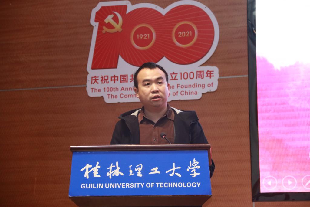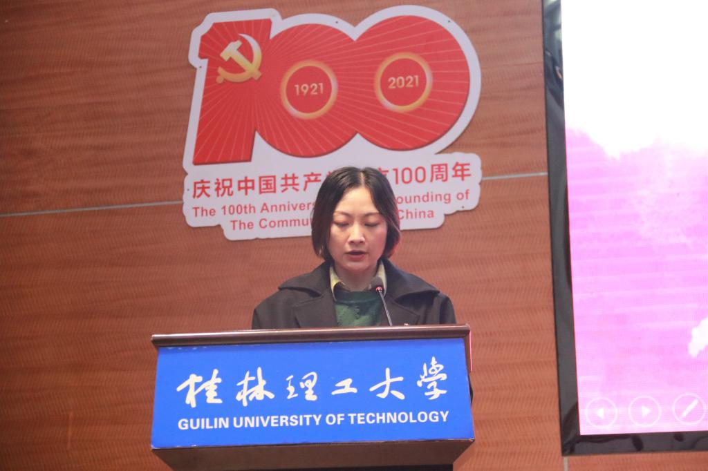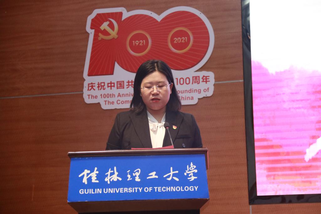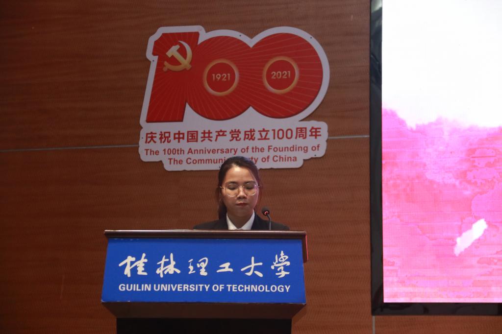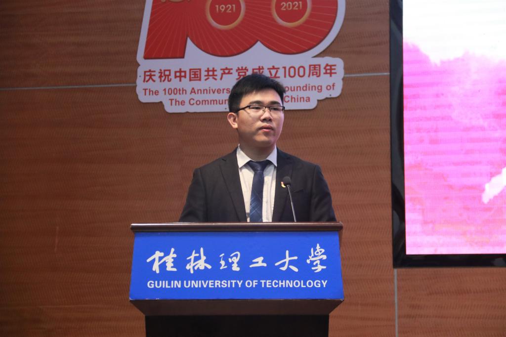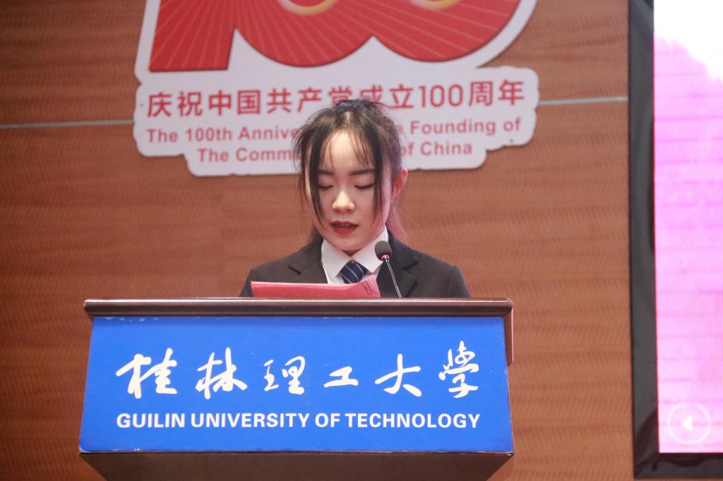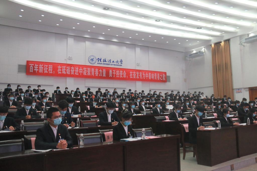 学校学生会主席团成员吕思佳同学对此次大会致贺词,代表桂林理工大学学生会向大会的召开表示热烈的祝贺,希望广大青年学子要肩负起历史使命、坚定前进信心、立大志、明大德、成大才、担大任,努力成为堪当民族复兴重任的时代新人。