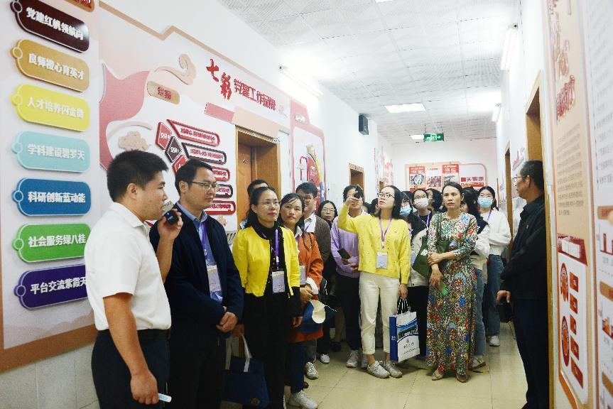 广西科技师范学院领导对yl23411永利的党建文化宣传长廊、三全育人示范院系建设阵地、清廉学院建设阵地的思路、展示的效果及党建引领所取得的成效表示肯定赞赏,是他们学习的榜样。
