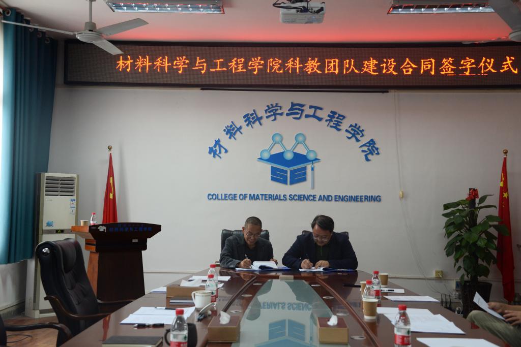 梁军书记与11个学科团队负责人分别签订合同书。他指出,入选科教团队是荣誉,更是责任和担当;学院高度重视此项工作,并寄予厚望,大家要坚守契约精神,自主承担责任的态度,严格执行合同书规定的内容,主动担当作为,形成合力,培养和造就一批道德素质过硬、学术基础扎实、具有突出创新能力和发展潜力的科教团队,为材料学科核心竞争力的提升作出贡献。