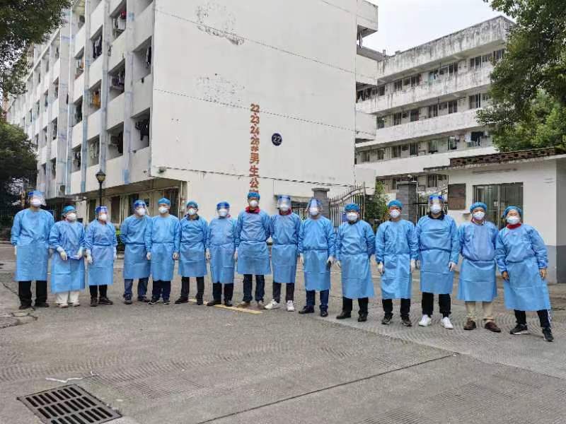 11月24日,我校根据桂林市疫情防控措施实施封控管理,学院疫情防控工作队伍听从指挥,对接屏风校区22-26栋学生宿舍疫情防控工作,负责核酸检测、送餐等工作。在疫情面前,学院教师以迅速到位、决不缺位、相互补位的态度奋战在抗疫第一线。他们舍小家、为大家,从父亲、母亲、丈夫、妻子的角色迅速转换成“大白”“志愿红”“蓝精灵”,恪尽职守,担当奉献。