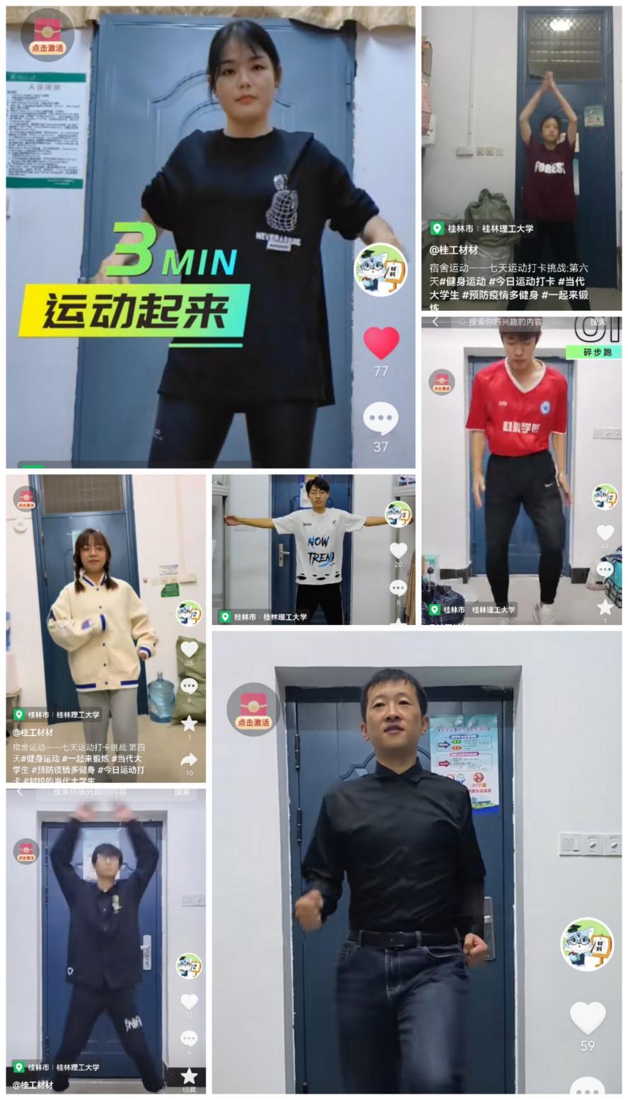 11月29日至12月5日,yl23411永利抖音账号“桂工材材”发起“疫”起运动——七天运动打卡挑战,2022级辅导员唐丹婷、桂鑫同5名2022级同学共同号召全体师生丰富室内活动,积极运动,强健体魄。