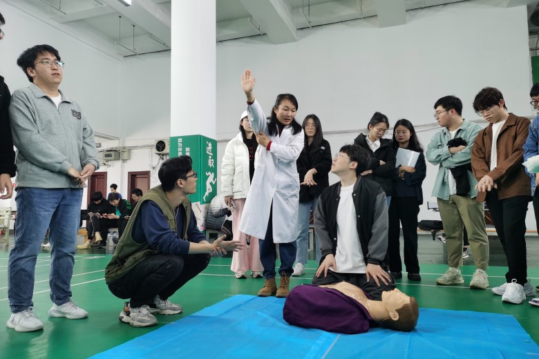 本次培训邀请到校医院卿雪琴、何美、林枫和伍琳凌4位医生的全程指导。培训过程中,医生首先详细讲解了应急救护的适用范围和应急救护的动作要领,最后通过现场操作让每位同学体验了应急救护的动作要领。整个应急救护培训活动紧张有序,交流热烈,不仅强化了学生们的安全意识,增强了应对实验室突发事件的处置能力,也提高了学生们应急救护能力。