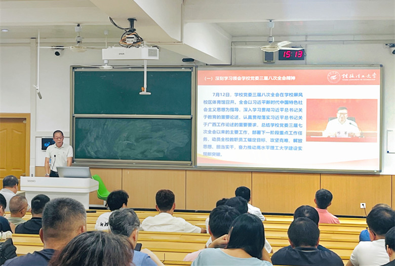 会上,学院党委书记梁军传达了学校党委书记邓军在学校2024年发展与改革研讨会上的讲话精神和学校党委副书记、校长王敦球在会上的主题报告。根据报告内容,学院党委书记梁军为大家梳理了深入学习贯彻党的二十届三中全会精神和习近平总书记关于广西工作论述的重要要求,学习和贯彻学校党委三届七次、八次全会精神,学校“学方略”读书班暨学校2024年改革发展研讨会精神专题内容,号召全院教职员工面对新形势和新要求,要紧密围绕“立德树人”根本任务,结合学院实际,以党建为引领,强化党引领学科建设的效能,解放思想,开拓奋进,进一步明确工作目标和任务,有思路、有举措、有担当、有作为,全面推进各项工作落地落实。