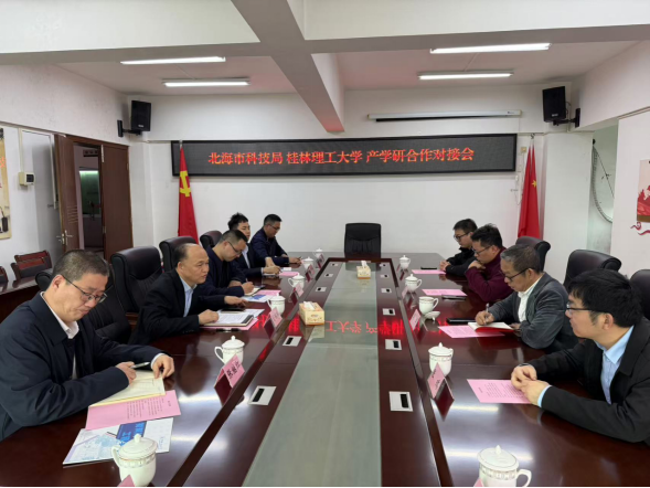 2月13日下午,与北海市科技局、广西北港新材料有限公司、中硅工业集团有限公司、北海高岭土科技有限公司、合浦硅材料产业技术研究中心负责人进行座谈。座谈会上,科技局副局长彭琪瑞介绍了北海市产业整体布局规划和人才培养平台搭建情况,并欢迎前沿科技成果在北海落地转化。学院党委书记梁军说明了调研意向,并介绍了学院基本情况。与会各方在项目联合申报、产业技术攻关、实习基地建设、专利成果转化等内容进行深入交流。