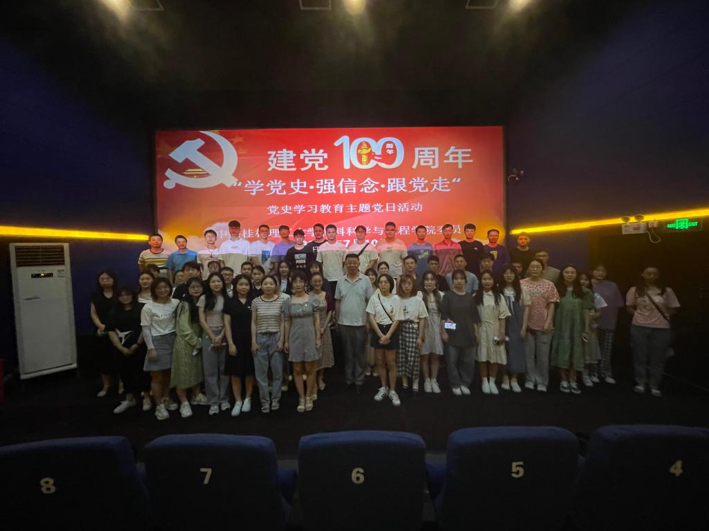 为深入开展党史学习教育,庆祝中国共产党成立100周年。7月10日上午,学院组织师生党员到桂林电影院开展“学党史・强信念・跟党走”党史学习教育主题党日活动,集中观看电影《1921》。