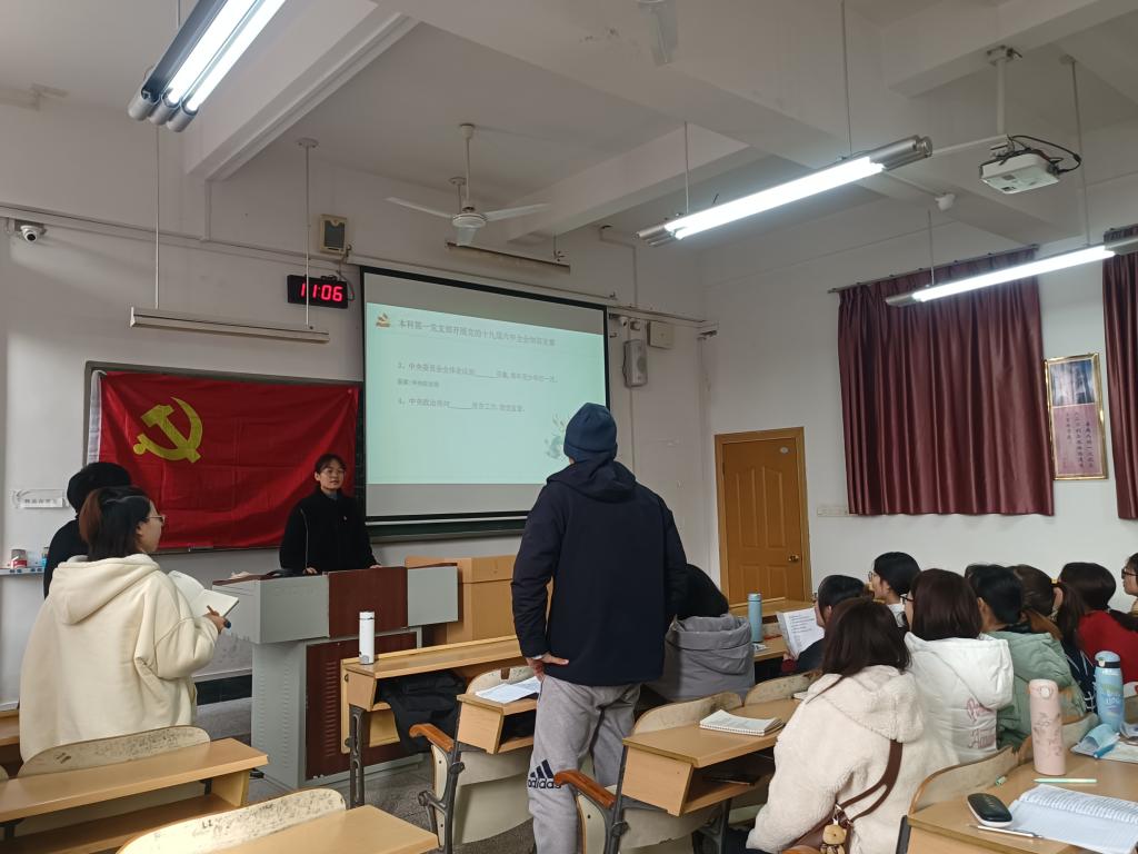 11月23日上午,学院本科生第一党支部在09305教室举办“锚定既定奋斗目标,意气风发走向未来”主题党日活动暨十九届六中全会知识挑战赛,本次活动由麦梅花同志主持,支部全体党员参加了活动。