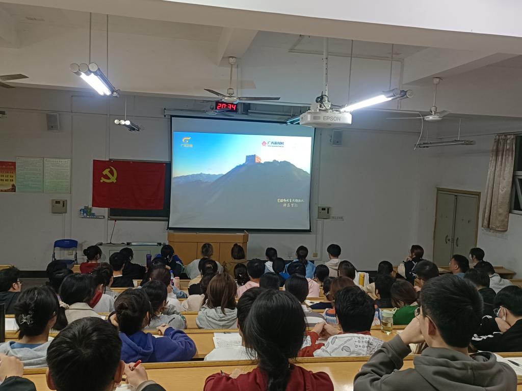 4月19日,学院本科生第一党支部组织观看自治区党委为迎接党的二十大胜利召开,在习近平总书记视察广西“4•27”重要讲话发表一周年之际,精心制作的电视专题片《紧跟伟大复兴领航人踔厉笃行》,全体党员同志参与本次活动。