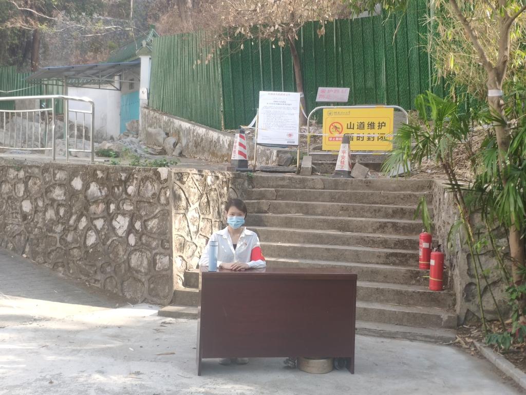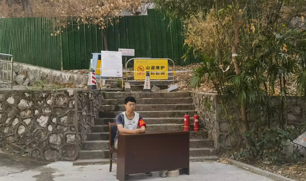 在防山火专项行动期间,学院党委每时段组织两名党员志愿者组成巡查小组,每天在屏风山脚周边开展安全巡查和封山禁火劝阻工作。如果发现火情立即与值班保安联系,并拨打学校报警电话进行汇报。