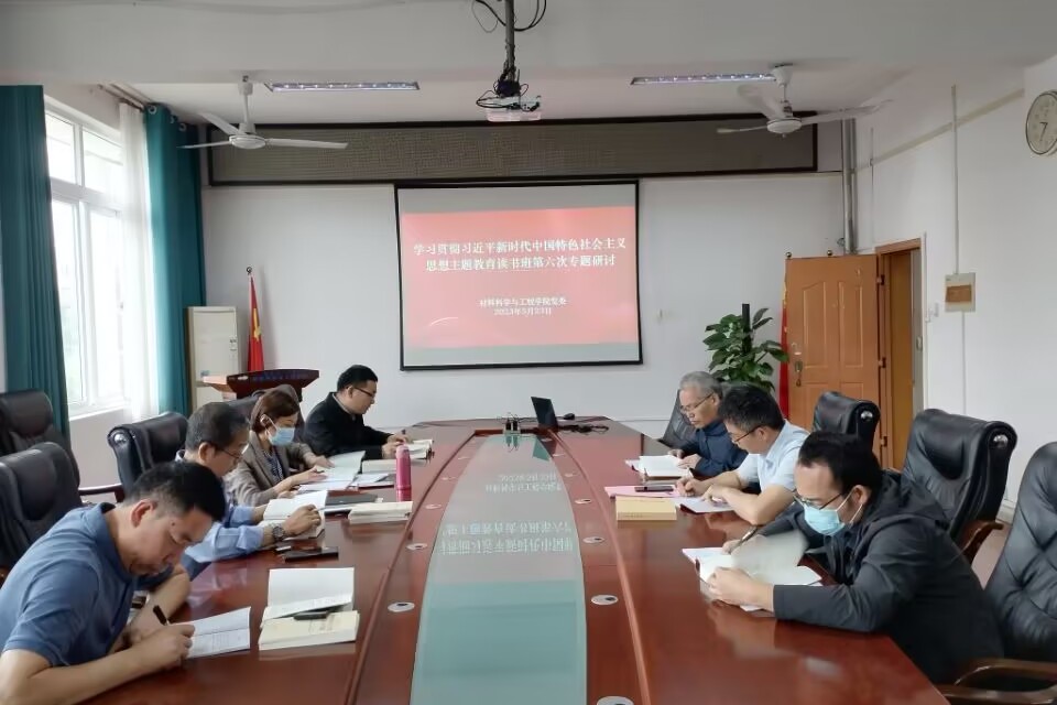 5月23日上午,材料学院召开党委领导班子学习贯彻习近平新时代中国特色社会主义思想主题教育读书班第六次专题研讨,重点就“深入学习习近平总书记关于完整准确全面贯彻新发展理念的重要论述”进行了专题研讨交流。学院党委书记梁军同志主持会议,学院领导班子成员出席会议。