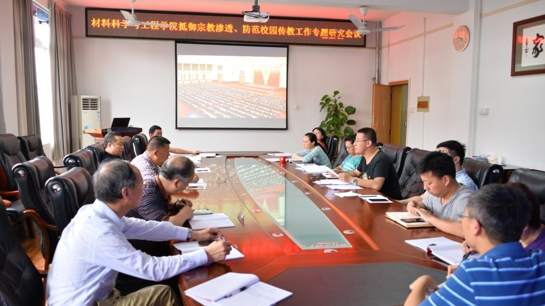 2019年9月11日,yl23411永利集团官网在屏风校区2308会议室召开抵御宗教渗透、防范校园传教工作专题研究会。学院领导班子成员、各教研室负责人及办公室教师参加会议。会议由学院党委书记李治主持。