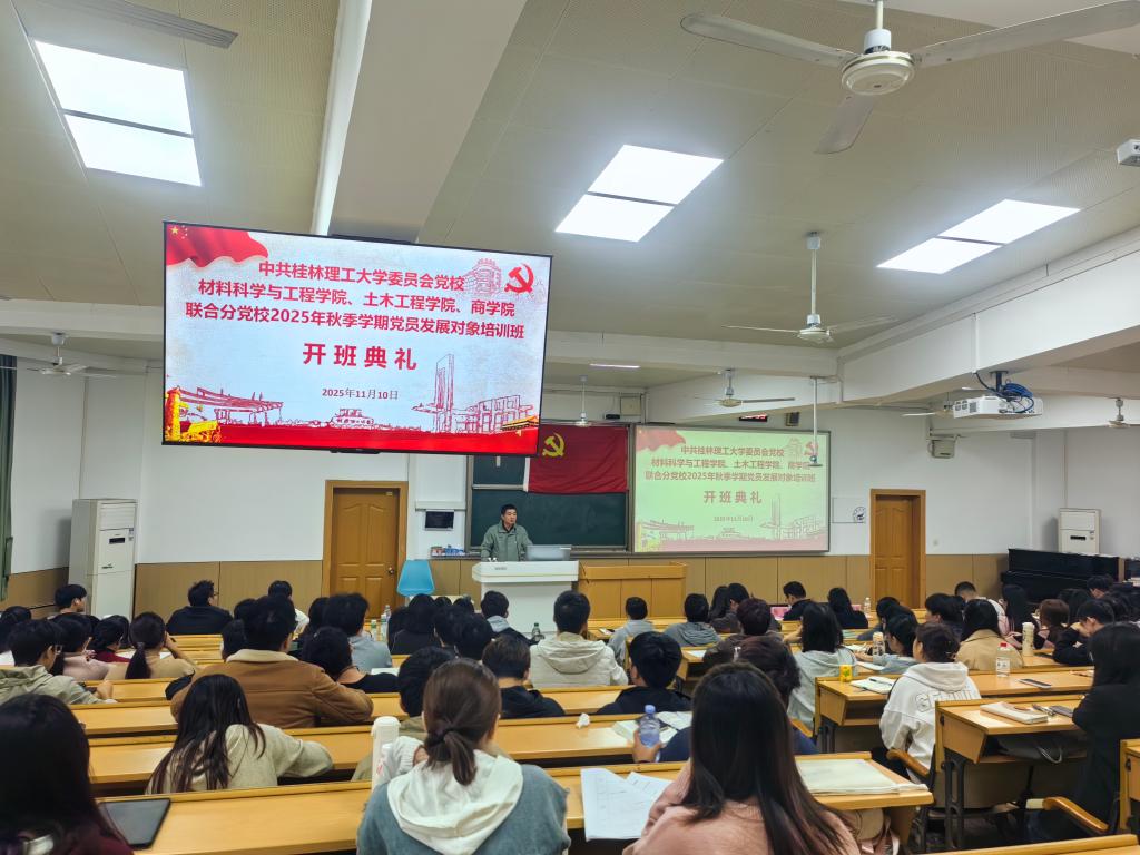 为深入学习贯彻习近平新时代中国特色社会主义思想和党的二十大、党的二十届三中、四中全会精神,切实提高党员发展对象政治素养和理论水平,yl23411永利集团官网、土木工程学院、商学院联合分党校于2025年11月10日中午在屏风校区9101教室举行2025年秋季学期党员发展对象培训班开班典礼。
