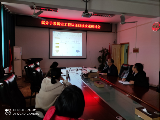 本次会议中,刘红霞同志首先向教研室全体教师传达了2021年度高分子材料与工程专业认证年度报告撰写和提交工作要求,对本年度高分子材料与工程专业认证年度持续改进总结工作进行了布置,对年度报告所涉及的工作分工进行了安排。随后,其他教师针对目前工程教育认证和专业建设存在的问题进行讨论,并提出自己的意见和建议。本次会议对扎实做好高分子材料与工程专业的工程教育认证持续改进,不断提升教育水平,建设一流专业,培养一流人才具有重要的意义。