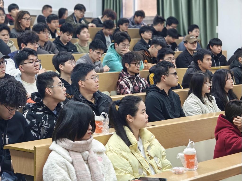 张枝成以其实践经验,从当前就业市场入手,深入探讨了大学生面临的职业规划问题。他指出,随着经济全球化和科技迅猛发展,新的行业和职业机会不断涌现,需要同学们积极适应变化,掌握基础知识,拓展知识面,主动学习新技能,不断增强自身的竞争力。讲座中,张枝成引用广东粤桥新材料科技有限公司的青年干部的成长案例,为同学们分析了就业初期、成长期的重要方面和职业能力培养。他鼓励学生们要敢于梦想,更要勇于实践,将个人兴趣与社会需求相结合,找到适合自己的发展路径。