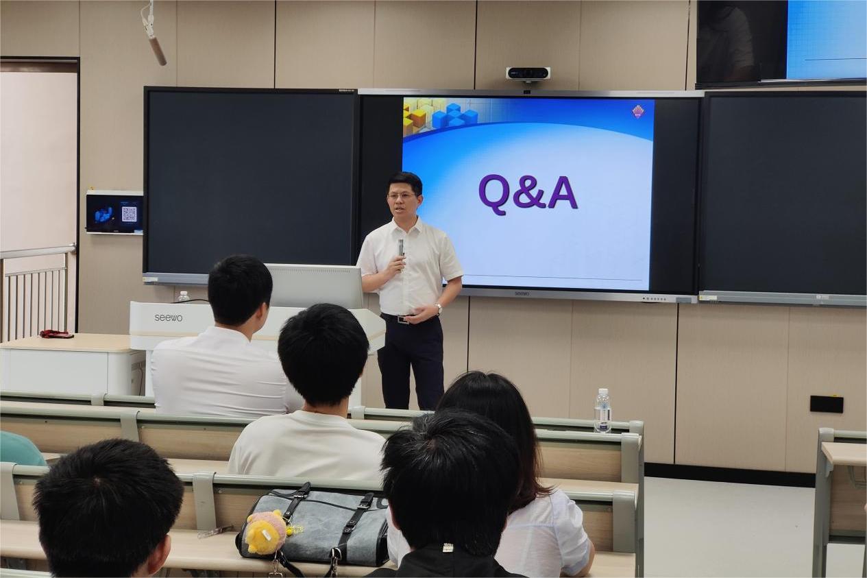 在自由提问环节,莫祖荣解答了同学们的求职疑问分享了岗位必备的实操技能建议同学们在职场前多积累尝试为未来就业打下坚实基础。最后,郝文佳对本次分享会进行了总结,希望同学们抓住规划未来的黄金期,打磨自己,像优秀的校友们一样,努力争取更多的实习就业机会。