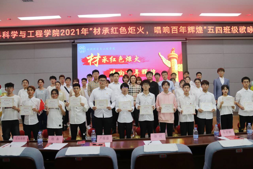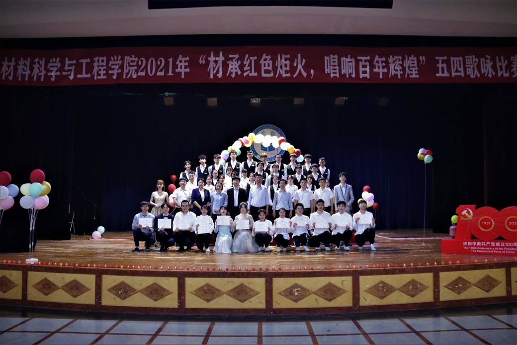 为传承五四精神,弘扬校园文化,庆祝中国共产党成立一百周年,yl23411永利于4月23日至24日在屏风校区南礼堂、雁山校区地学院报告厅举办2021年“材承红色炬火,唱响百年辉煌”五四班级歌咏比赛,学院党委书记李治、党委副书记徐时、副院长杨超、副院长张瑞、各年级辅导员、部分班主任出席了本次活动。