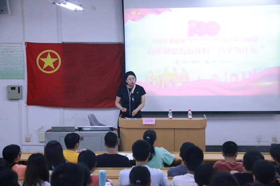 赵老师先是引导学员思考为什么要学习党史,然后为学员们讲述了青年大学生学习党史的必要性和重要性,引导青年学生在学习党史中汲取伟大力量。接着,赵老师分别从中国共产党为什么能,马克思主义为什么行,中国特色社会主义为什么好,信仰的味道为什么甜,艰苦奋斗的本色为什么美,党的靠山和底气为什么强这六个方面详细的进行讲述。最后赵老师强调,作为青年学生,既要脚踏实地,又要抬头看天,了解当今所处形势,坚定理想信念,明确伟大理想目标,从党史中汲取智慧,勇敢朝着目标奋斗。