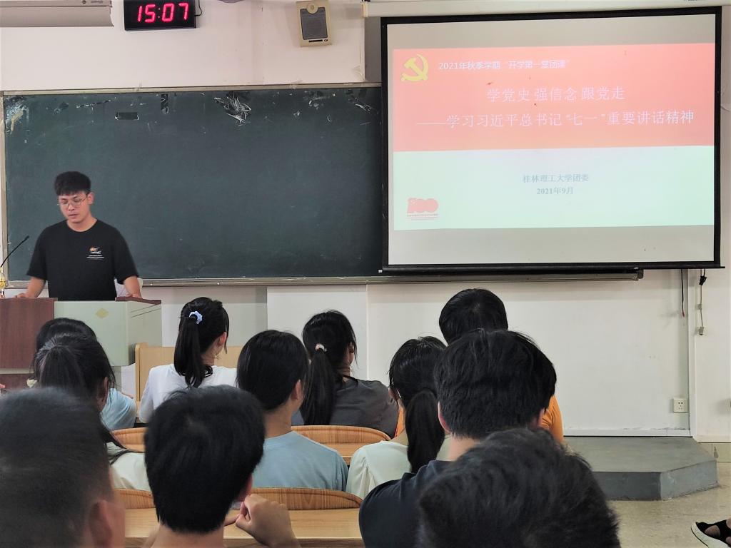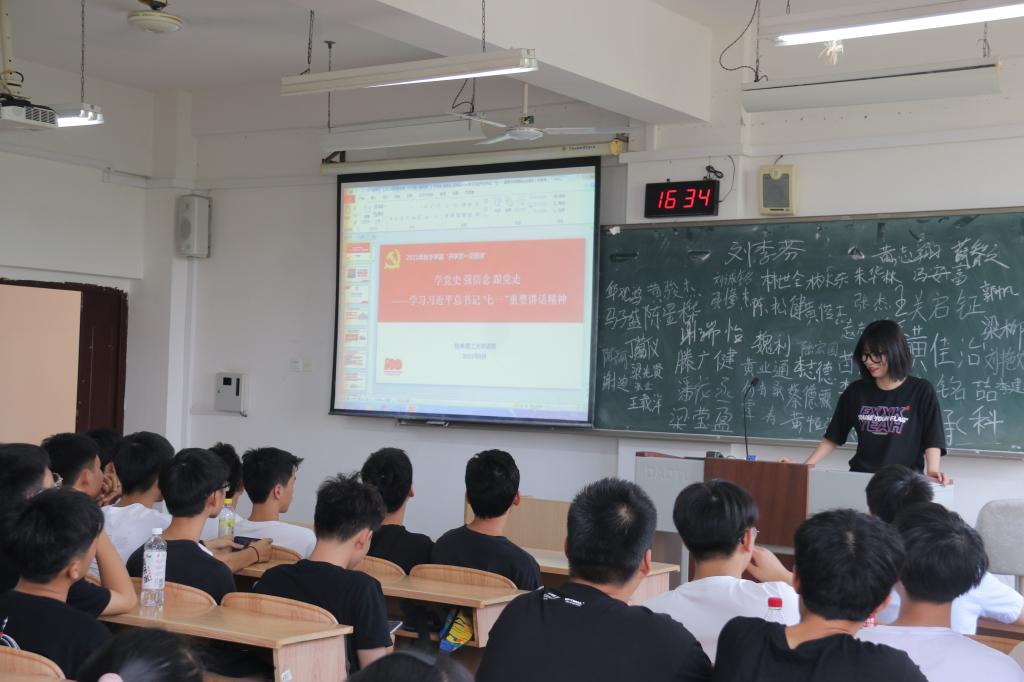 党员学长们首先带领全体新生回顾了中国共产党百年光辉历程,以及在这个历程中形成的坚持真理、坚守理想、践行初心、担当使命、不怕牺牲、英勇斗争、对党忠诚、不负人民伟大的建党精神。接着,团支部团员们积极分享学习心得体会,最后,赵思聪老师勉励全体学生不负时代,高扬理想风帆,以使命在肩、奋斗有我的姿态迎接即将到来的大学生涯;不负韶华,锐意拼搏进取,珍惜在校的学习时光,学好专业知识,锤炼技能本领;不负期望,投身强身伟业,以科技强国为职业目标,在将来的岗位上建功立业,有所作为。