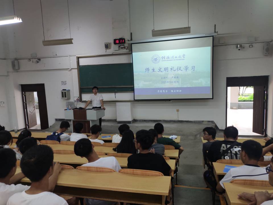为了引导广大新生提高文明意识,增长礼仪知识,树立文明新风,遵守礼仪规范,进一步调动新生学礼仪、重礼仪、讲礼仪、践行礼仪的积极性,营造良好和谐的氛围,yl23411永利于9月30日下午在雁山校区05101和05102教室进行专题学习,2021级全体本科新生参加了学习,学院团委副书记(兼)卢桂盛老师和新生辅导员尹贤彬老师分别进行领学,他们主要从师生礼仪、同学礼仪、学校公共礼仪、学校课堂礼仪和文明交谈礼仪等方面对同学们进行举例讲解。