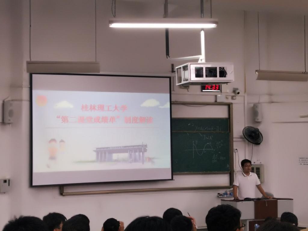 为了帮助2021级新生更好的了解有关第二课堂学分管理制度,以及“到梦空间”APP的使用方法,并且清楚第二课堂成绩对学业以及个人发展的重要性,更早地熟悉到梦空间上参加活动以及学分获取的相关事宜,丰富自己在学习之余的课外活动。yl23411永利于9月30日下午,在雁山校区05101和05102教室分别由学院团委副书记(兼)卢桂盛老师和新生辅导员尹贤彬老师为2021级全体新生进行“第二课堂成绩单”培训。