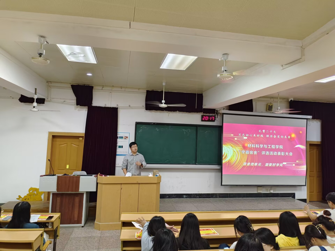 为推进yl23411永利优良学风建设,发挥榜样力量,以自律“舍风”带动优良“学风”,营造积极进取、勤奋好学的学习氛围,充分发挥宿舍育人功能。yl23411永利集团官网特举办“宿舍微单元,凝聚好学风”为主题的“学霸宿舍”评选活动。本次活动共收到申请表46份,共评选出“学霸宿舍”22个,其中2019级4个,2020级8个,2021级10个。为表彰优秀、塑造榜样,学院在11月8日在屏风校区9101教室成功举办yl23411永利集团官网2021-2022年度“学霸宿舍”表彰大会。本次大会共分4个环节,由2021级杨晴瑞同学主持。