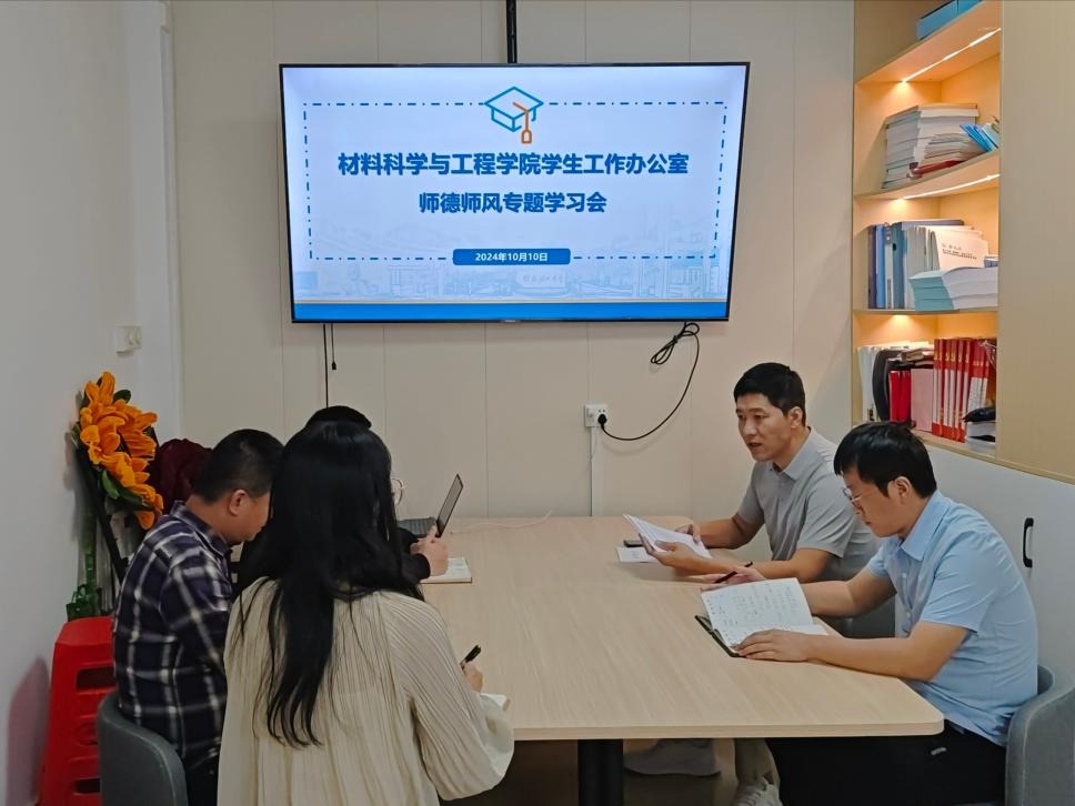 为进一步加强学院教师队伍建设,提升学院辅导员队伍的职业素养与师德水平,学院学工办全体成员于10月10日在屏风校区2301办公室召开了师德师风专题学习会,会议由院党委副书记郝文佳主持,在雁山校区的辅导员通过线上形式参加会议。