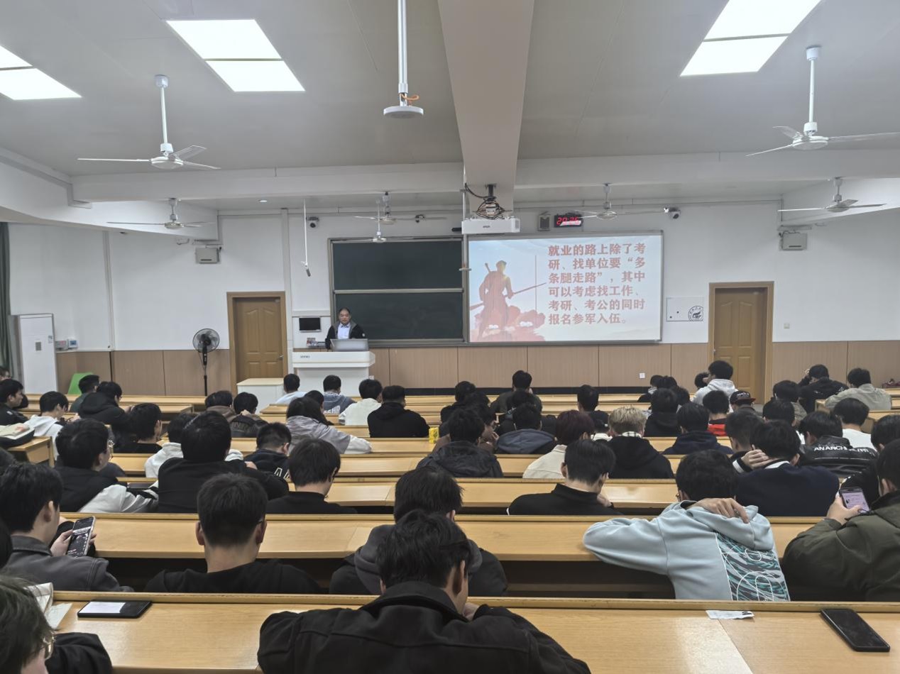 为帮助同学们更好地了解征兵政策,鼓励大学生积极投身军营报效祖国。12月1日晚,yl23411永利集团官网在屏风校区9201教室召开征兵入伍宣传动员大会。学校武装部副部长黄海、2021级280余名同学参加本次会议,会议由学院2021级辅导员曲怀仁主持。