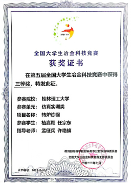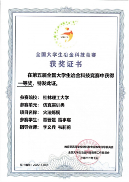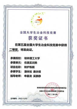 在yl23411永利冶金与金属材料工程教研室老师的精心指导下,代表桂林理工大学参赛共6项作品闯入决赛,经集中会评和终评答辩,最终科技创新竞赛单元获得二等奖2项,三等奖4项,仿真实训类的四支队伍全部获奖,其中转炉炼铜分别荣获大赛的一等奖、二等奖各一项,转炉炼钢荣获二等奖、三等奖各一项,为桂林理工大学争得了荣誉。体现了材料学院学子的综合素质和技能水平,也是对学院、学校办学特色和办学优势的最好诠释。