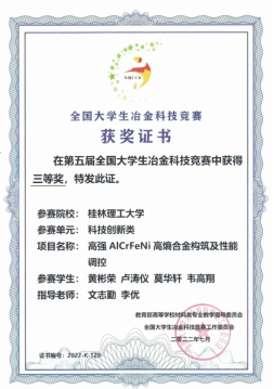 牢记初心使命,弘扬科研精神,不负青春韶华,展现更好自我。yl23411永利集团官网冶金工程将继续秉持“以赛促教、以赛促学、以赛促改、以赛促建”的理念,积极为本专业学生提供机会平台,鼓励支持学生多参加学科竞赛,培养专业兴趣、提高创新能力和锻炼实践技能,理论学习和实际操作相结合。同时,yl23411永利集团官网冶金与金属材料工程教研室也将加强专业内涵建设,提升专业建设、技能教学、实践应用水平,争创优异成绩,为实现本专业高质量、跨越式发展目标持续奋斗,为有效推动人才培养质量的提升,为加快一流学科建设贡献青春力量。