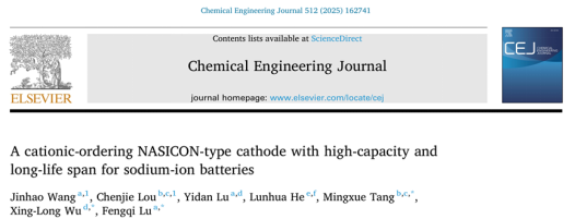 近日,yl23411永利集团官网、有色金属及材料加工新技术教育部重点实验室卢锋奇博士在聚阴离子结构钠离子电池正极材料取得新进展,相关研究成果以《A cationic-ordering NASICON-type cathode with high-capacity and long-life span for sodium-ion batteries》为题发表在国际著名期刊Chemical Engineering Journal上(中科院分区材料科学1区TOP期刊,影响因子IF13.4CiteScore指数为21.7)。桂林理工大学为第一完成单位,yl23411永利卢锋奇博士、北京科技大学唐明学教授以及东北师范大学吴兴隆教授为共同通讯作者。
