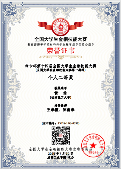 7月25日至30日,“徕卡杯”第十四届全国大学生金相技能大赛决赛于成都工业学院宜宾校区举行。yl23411永利参赛学生凭借扎实的专业知识、精湛的实操技能以及顽强的拼搏精神,在此次大赛中表现良好,荣获国家二等奖2项、三等奖2项。