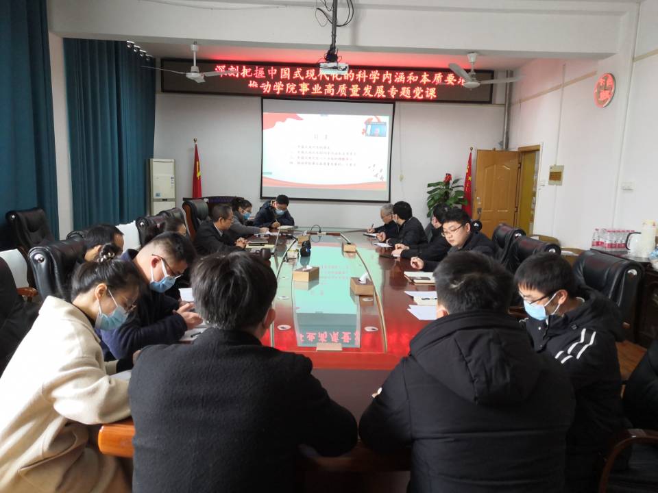 【书记讲党课】学院党委书记梁军同志为学院师生党员讲专题党课为深入学习贯彻习近平新时代中国特色社会主义思想和党的二十大精神,同心同德、埋头苦干、奋勇前进,不断为学院事业高质量发展筑牢思想之基和坚定信心。12月6日下午,学院党委书记梁军同志在2308会议室通过线下和线上的方式为学院师生党员讲了题为《深刻把握中国式现代化的科学内涵和本质要求,推动学院事业高质量发展》专题党课。梁军同志从中国式现代化的提出、中国式现代化的科学内涵和本质要求、中国式现代化六个方面的精髓...2022-12-06 -