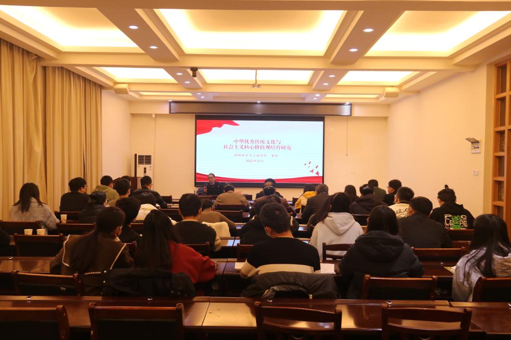 【书记讲党课】学院党委书记梁军同志为屏风校区三个学院党支部支委讲专题党课为深入学习宣传贯彻习近平新时代中国特色社会主义思想和党的二十大精神,不断提升屏风校区三个学院党支部支委履职能力和业务本领,进一步推动学校事业高质量发展。12月6日晚,学院党委书记梁军同志在土木与建筑工程学院4204会议室为屏风校区三个学院党支部支委讲了题为《中华优秀传统文化与社会主义核心价值观培育研究》专题党课。会上,梁军同志从社会主义核心价值观的内容解读、中华优秀传统文化脉络及传统文化中的基本价值观...2022-12-07 -