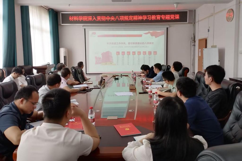 材料学院组织开展深入贯彻中央八项规定精神学习教育专题党课为深入学习习近平总书记关于加强党的作风建设的重要论述和中央八项规定及其实施细则精神,深刻领悟“两个确立”的决定性意义,坚决做到“两个维护”,切实把思想和行动统一到党中央决策部署上来。4月30日下午,学院党委在2308会议室召开深入贯彻中央八项规定精神学习教育专题党课。专题党课由学院党委书记梁军讲授。学院党委委员、党支部书记参加。梁军同志从重温中央八项规定的主要内容、违反中央八项规定精神的主要表现、违反...2025-04-30 -