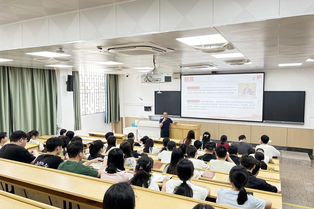 学院党委书记梁军同志为结对联系党支部讲授专题党课为深入贯彻中央八项规定精神学习教育,加强学生党员作风建设,5月9日,学院党委书记梁军同志在9107教室为研究生第一、第二党支部党员讲授了深入贯彻中央八项规定精神学习教育的专题党课。梁军同志从学生的实际情况出发,深入浅出地讲解了中央八项规定的主要内容及其重要意义。他特别强调,学生党员作为青年骨干,要从小事做起,在学术科研、学习工作中践行勤俭节约、求真务实的精神。他通过剖析违反八项规定的典型案例,警示同...2025-05-10 -