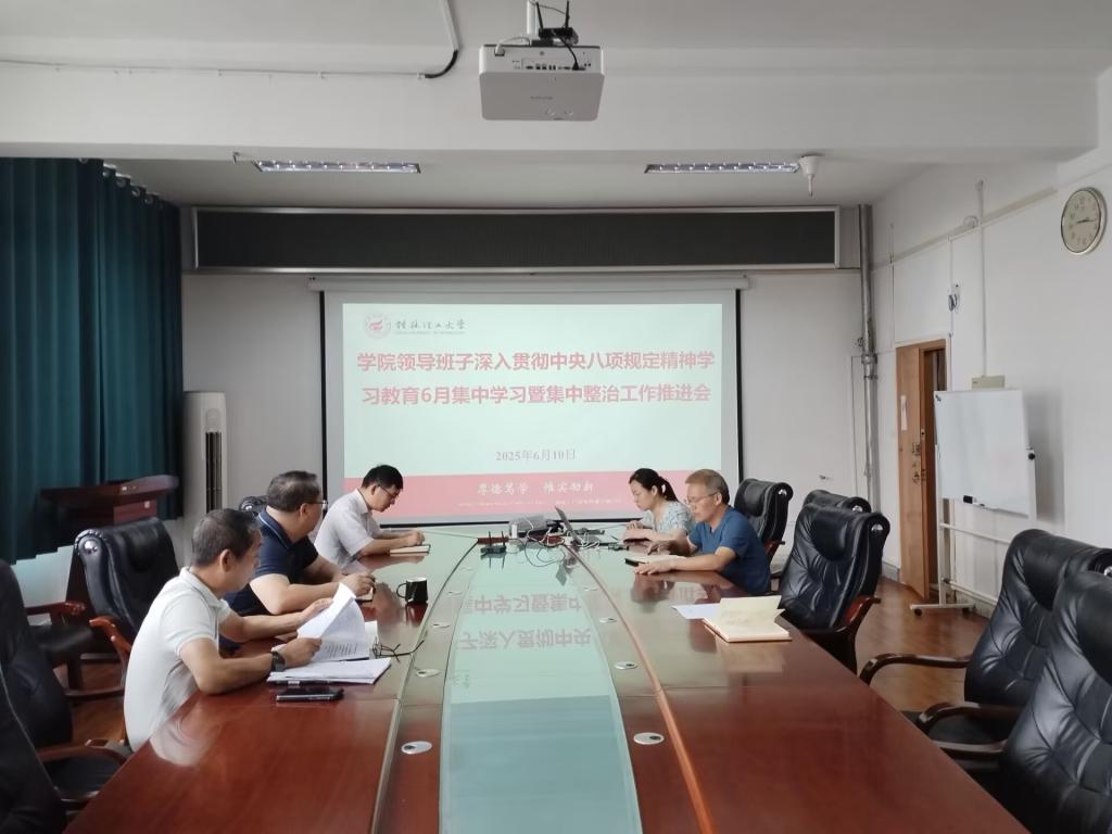 学院党委领导班子开展深入贯彻中央八项规定精神学习教育6月集中学习暨集中整治工作推进会6月10日上午,学院党委领导班子开展深入贯彻中央八项规定精神学习教育6月集中学习暨集中整治工作推进会在2308会议室举行。会议由学院党委书记梁军主持。学院领导班子成员出席会议。会上,梁军同志传达习近平总书记在河南考察时的重要讲话精神以及中共中央组织部《从严从实推进深入贯彻中央八项规定精神学习教育》要求。进一步传达学校深入贯彻中央八项规定精神学习教育系列工作提示。会上,与会人员集中学习《党政机关厉行节约...2025-06-10 -